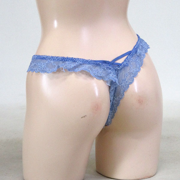 ポリエステル・ナイロン他、Tバック、局部シミあり、ブルー他、人妻